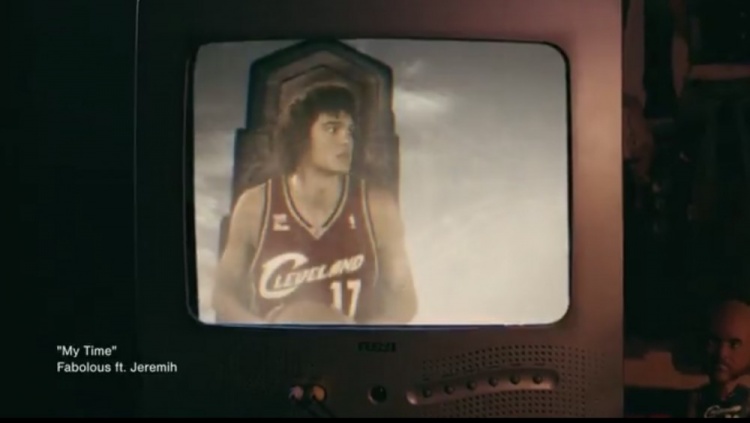 The classic player images in team history that appear in the classic promotional video include James and Varejao. James looks out from the street buildings in Cleveland and steps forward. The camera gives a close-up of the "Witness" tattoo on James' right calf, while Varejao draws the Cavaliers sword from the team logo.