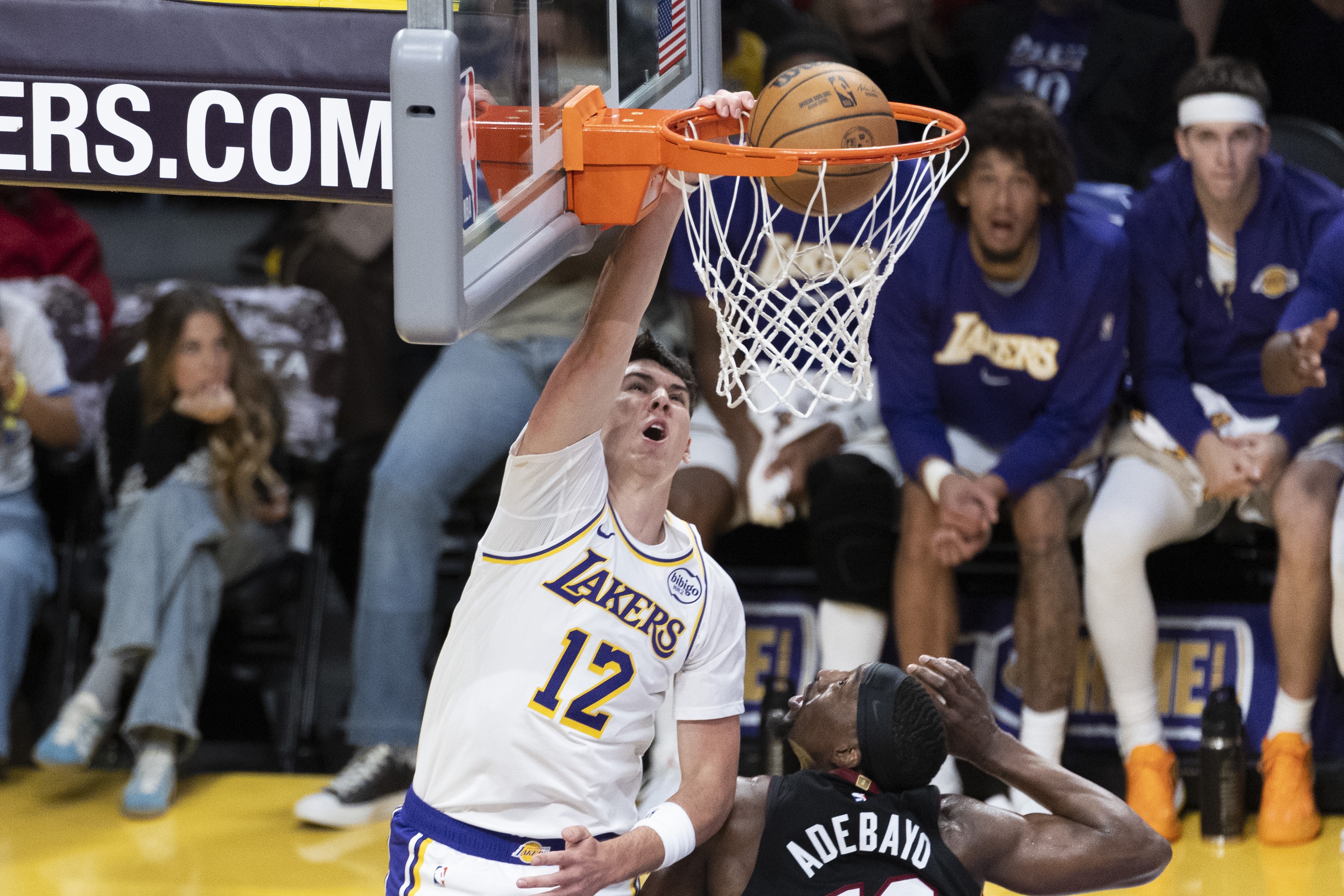 LaRavia had three dunks against the Heat on Sunday, including a left-handed dunk over Heat shot-blocker Krell Ware.