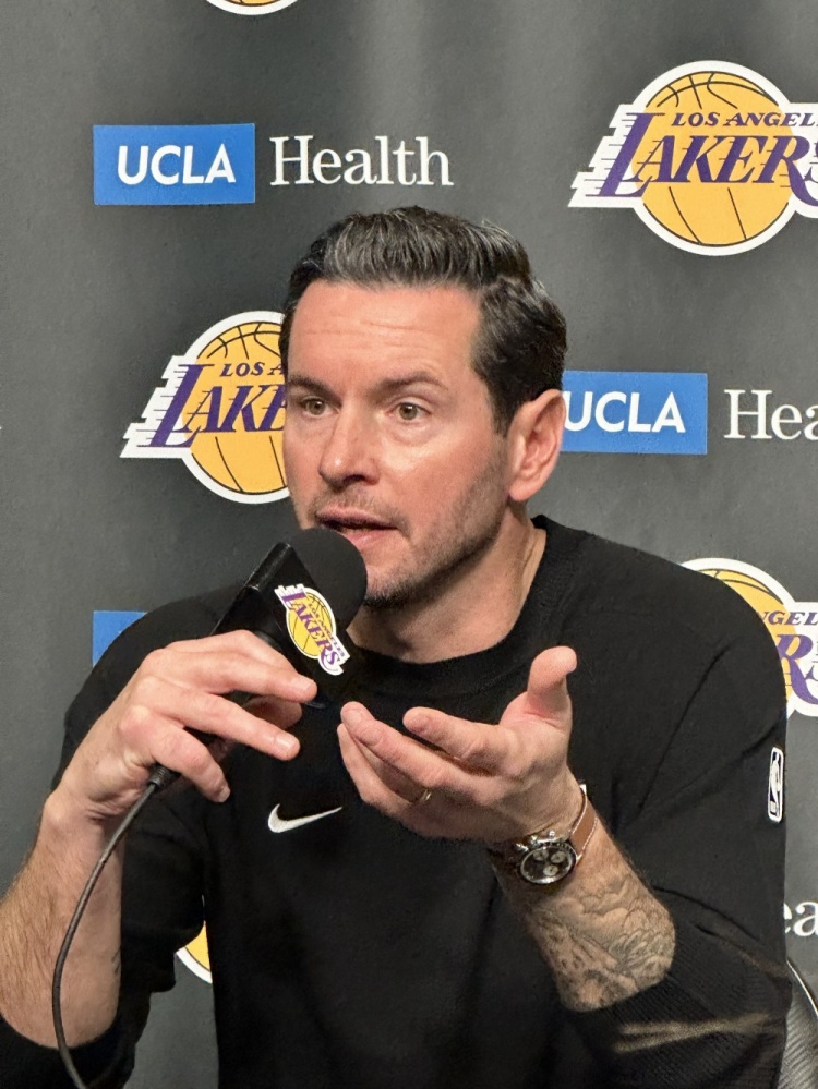 In the NBA regular season, the Lakers defeated the Spurs 118-116. Redick accepted interviews with the media after the game.