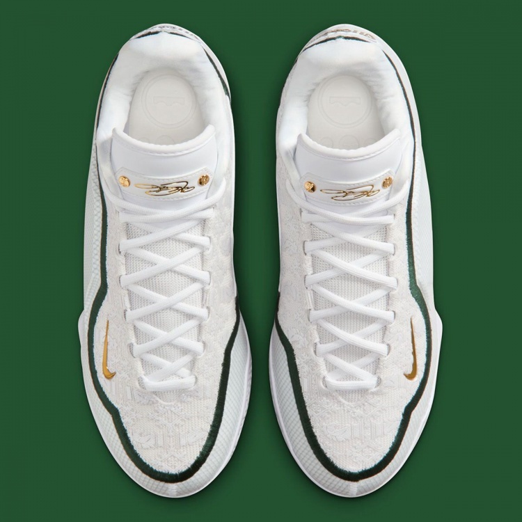 This color scheme cleverly incorporates elements from the 2002 "Sports Illustrated" cover, complementing the color of the jersey worn by James in high school. The fresh white and vibrant green are intertwined, coupled with the exquisite three-dimensional carvings on the upper, making the entire shoe look both classic and attractive.