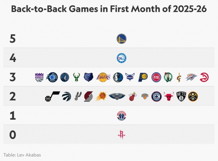 Number of back-to-back games in the first month of this season: The Warriors have the most with 5 games, the 76ers are second with 4 games, and the Rockets have no back-to-back games. 12:30am, 27 November 2025 Basketball source:ty so 7m cn Last:Wednesday sports betting basketball focus: Timberwolves lineup is complete, Thunder’s top star may be absent Next:Thick Eyebrow: Trading rumors will not affect me. I am surrounded by rumors all the time. I just want to do my job well. Recommend News American News: The Heat became more competitive without sacrificing too much. Th Jaylen Green: The recovery process is frustrating, but it’s just a mental strugg Rich Paul to team up with former ESPN host Max Kellerman for new podcast to air Vanessa shows off her family s Halloween costumes, and Gasol once again accompan