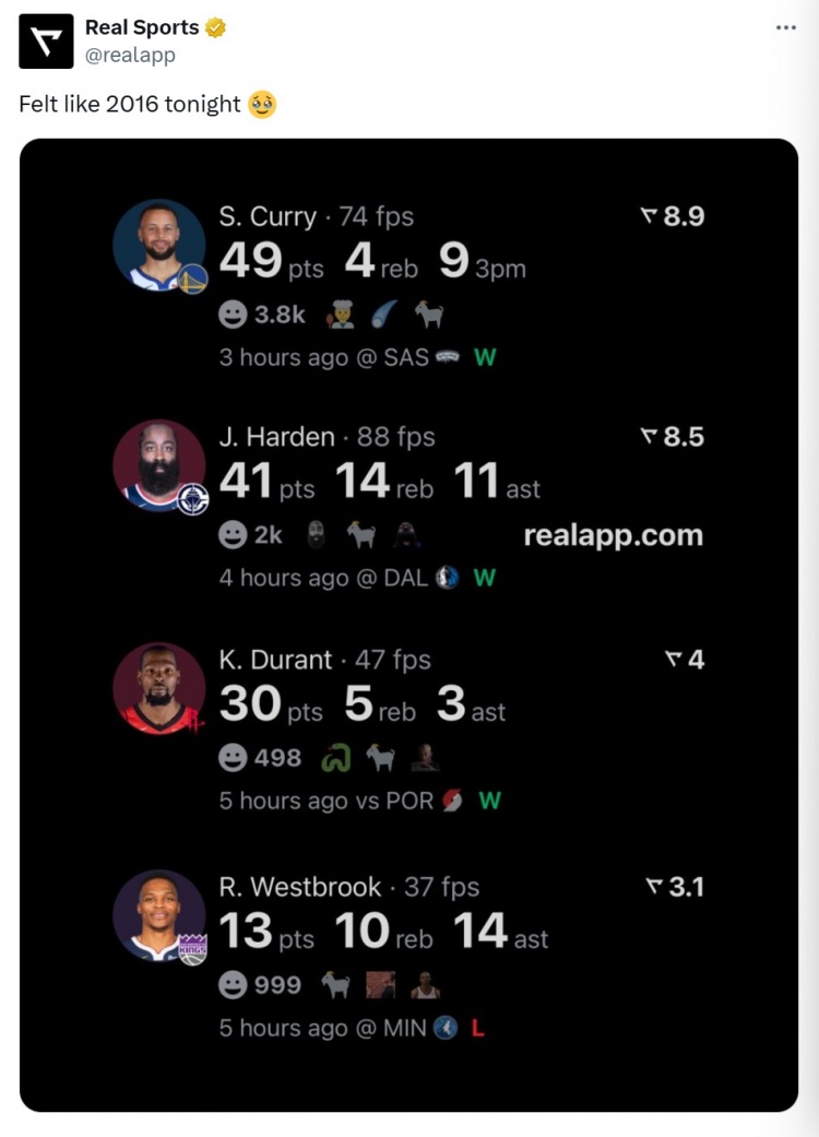 Durant played 35 minutes and 43 seconds, making 12 of 19 shots, 3 of 6 three-pointers, 3 of 3 free throws, and scored 30 points, 5 rebounds, 3 assists and 1 steal.