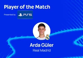 In the third round of the UEFA Champions League, Real Madrid 1-0 Juventus at home. Guler started the game and was named the best player of the game after the game.