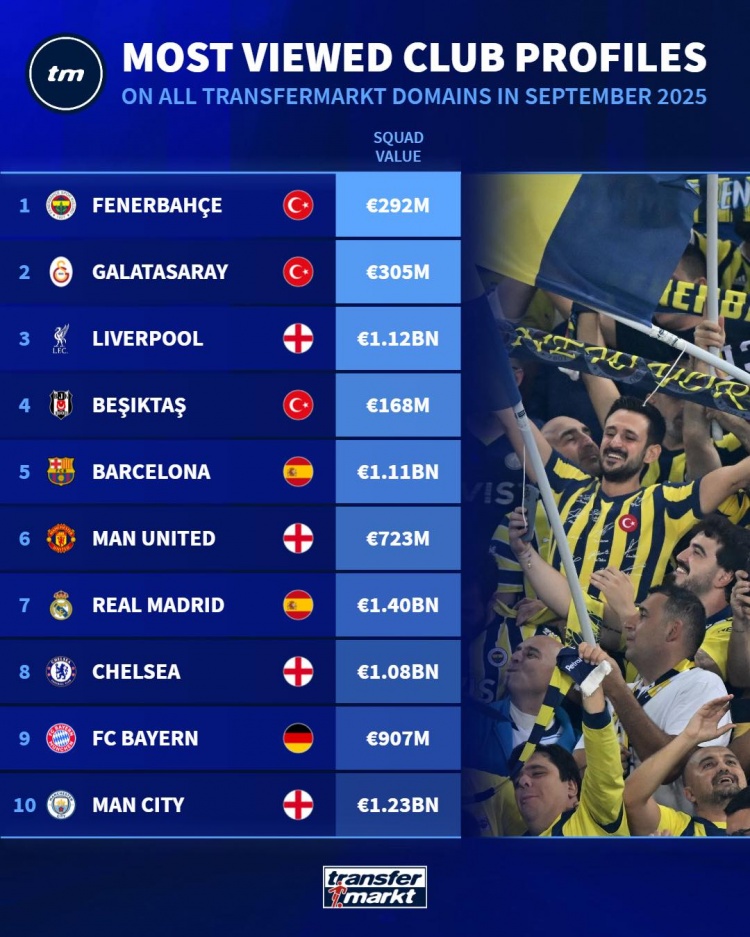 German player page views in September: Ronaldo ranked first, Ederson ranked second, Messi ranked seventh