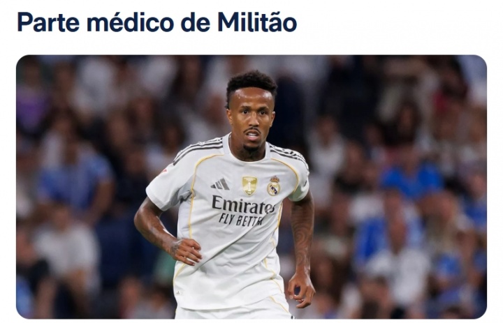 According to Spanish media reports, Militao is expected to miss 2-3 weeks from injury, and the goal is to recover as soon as possible in time for the Champions League game against Manchester City.