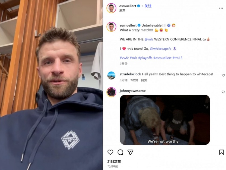 Mueller celebrated the Vancouver Whitecaps promotion on social media: It s unbelievable, we have reached the Western Conference Finals!