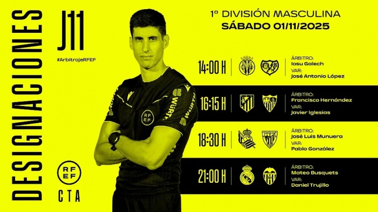 Part of the referee arrangements for the 11th round of La Liga: Truillo referees Real Madrid s home game against Valencia